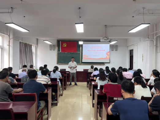 为热烈庆祝中国共产党成立104周年,赓续红色血脉,弘扬伟大建党精神,7月1日,beat365正版唯一官网党委组织全体教师党员举行“铭记入党初心,勇担育人使命”“七一”主题党日活动。党委书记赵驰欣主持活动。