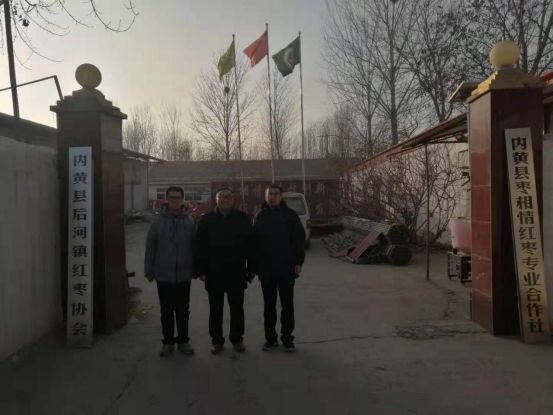 图为内黄县枣相情红枣专业合作社协会会长(中)和我院王景顺副院长(右)洽谈合影留念