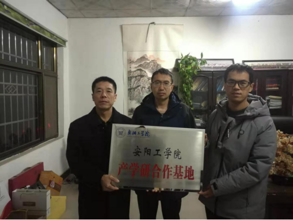 图为我院王景顺副院长(中)和安阳双强豆制品有限公司董事长陈章红(左)、我院游新勇博士(右)挂牌合影留念