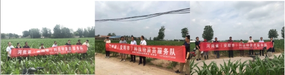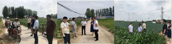 2021年7月6日,我院安阳市科技特派员李鹏涛、韦洋洋和王涛博士邀请中国农业科学院棉花研究所玉米育种专家李健副研究员和安阳工学院beat365正版唯一官网棉花专家刘玉玲副教授赴内黄县大槐林、小槐林和后安村进行科技扶贫帮扶工作,开展实地调研和现场解答各村部群众生产上的难题。