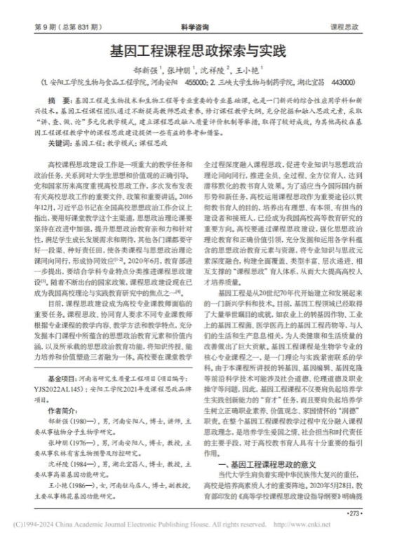 9.新农科背景下高校创新型农林人才培养模式研究——以安阳工学院为例,教书育人(高教论坛)